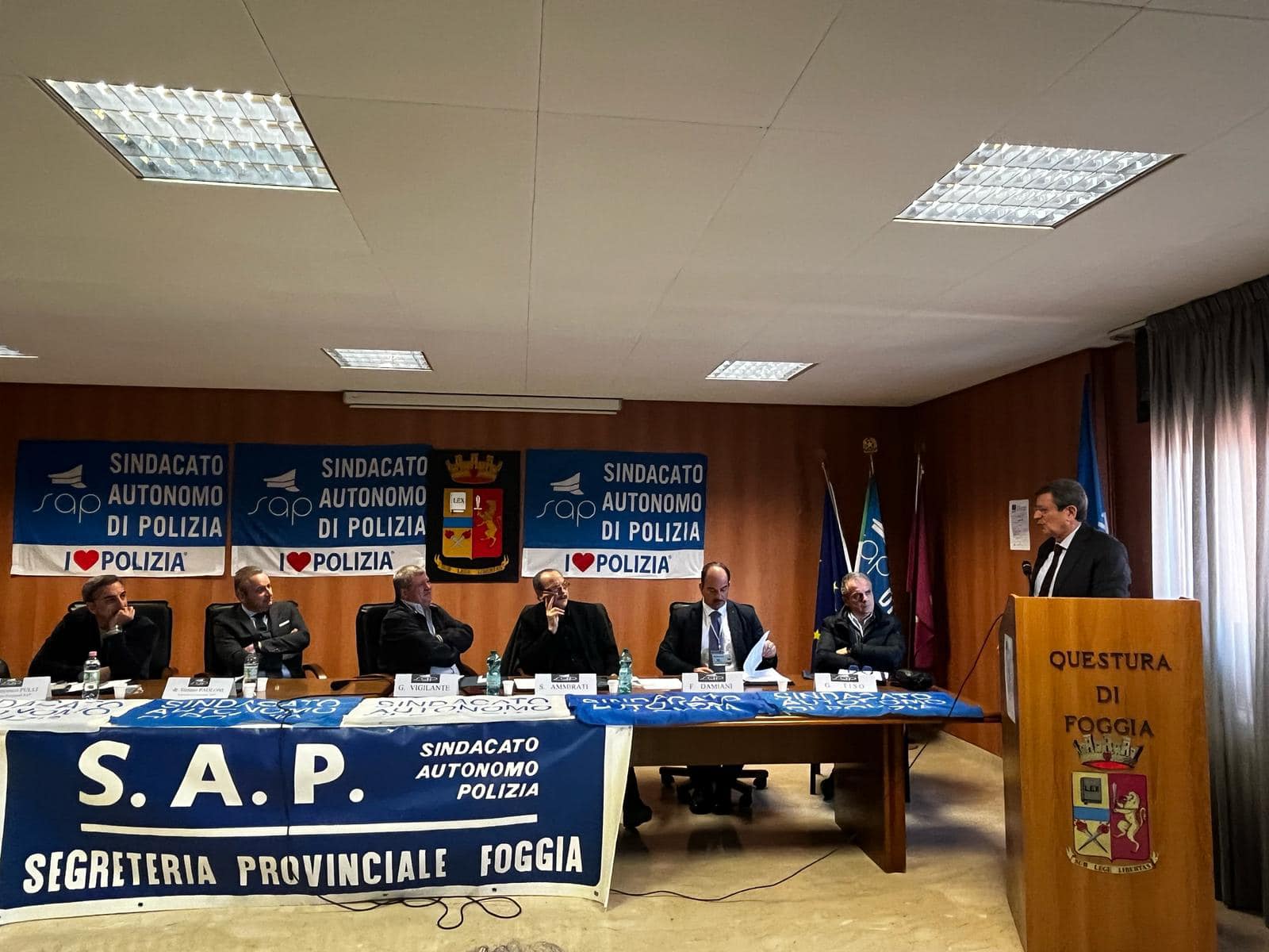 Nella giornata di ieri, 5 marzo, si è celebrato presso la sala riunioni della Questura di Foggia l’11° Congresso provinciale del SAP cui hanno partecipato il Segretario Generale Stefano Paoloni, il Segretario Regionale SAP Puglia Silvano Ammirati e i dirigenti sindacali Francesco Pulli e Vito Stasolla. Presenti, inoltre, il sig. Prefetto di Foggia Paolo Giovanni Grieco, il Questore Dott. Alfredo D’Agostino, Potito Perruggini Ciotta dell’Osservatorio nazionale Anni di piombo per la verità storica e il Sindaco di San Severo Lydia Colangelo.