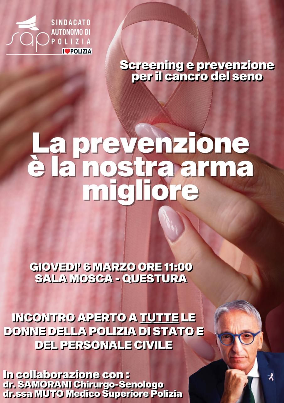 Si è tenuto ieri, presso la Sala Mosca della Questura di Rimini, il Convegno, organizzato dalla Segreteria provinciale del SAP di Rimini in occasione della giornata internazionale della donna, dal titolo “La prevenzione è la nostra arma migliore“, in collaborazione con il Dr. Domenico Samorani, chirurgo senologo e la Dr.ssa Nunziatina Muto, Medico Superiore della Polizia di Stato, dirigente dell’Ufficio Sanitario della locale Questura.
