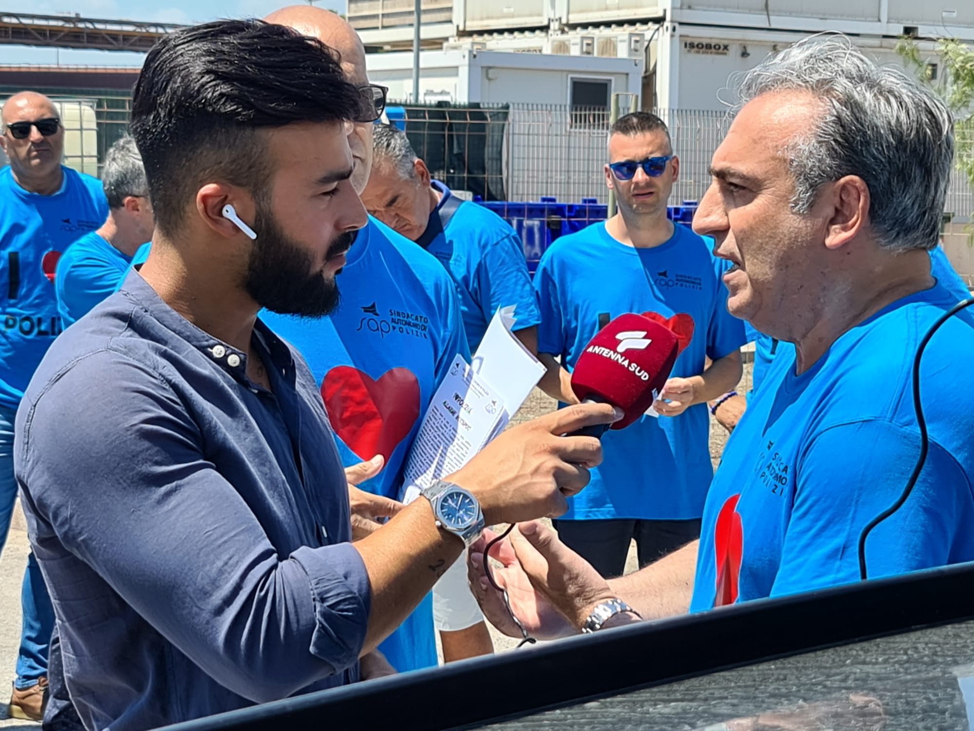 La manifestazione organizzata dal SAP di Taranto e con la presenza di un Dirigente Nazionale, Francesco Pulli, è partita dalla Prefettura per poi spostarsi al Hotspot di cui si chiede la chiusura immediata fino a quando non sarà messo a sistema e non gli sarà assegnata una funzione specifica. Dice Magazzino: “L’Hotspot nasce come luogo di permanenza fino a 72 ore, ma si trasforma invece in un centro di permanenza continuativa senza che ci siano servizi idonei per gestire una massa di gente superiore a quella prevista per l’accoglienza. L’Hotspot sia dal punto di vista igienico sanitario che dal punto di vista della sicurezza non è assolutamente idoneo a svolgere attualmente nessun compito né come Hotspot né come altro. I nostri colleghi sono costretti ad un impiego giornaliero che li porta a permanere lungo il perimetro con delle postazioni fisse al sole con 40 gradi per sei, sette o otto ore”.