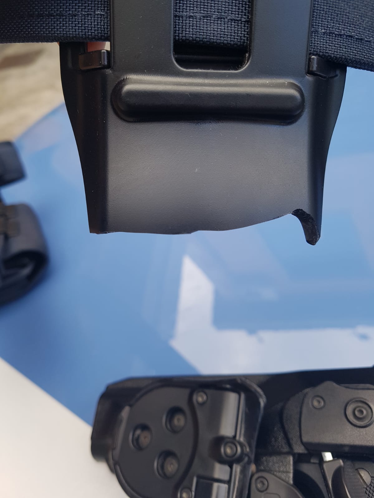 Le nuove fondine rotanti continuano a rompersi e sempre nello stesso punto, con il rischio che l’arma possa cadere per terra durante l’intervento. Dopo i recenti casi di Taranto e Catania, ci giungono nuove segnalazioni da Vibo Valentia e da Cagliari. Come potrete vedere nelle foto, l’anomalia che rappresentiamo all’Amministrazione dal dicembre 2018, continua a ripetersi.