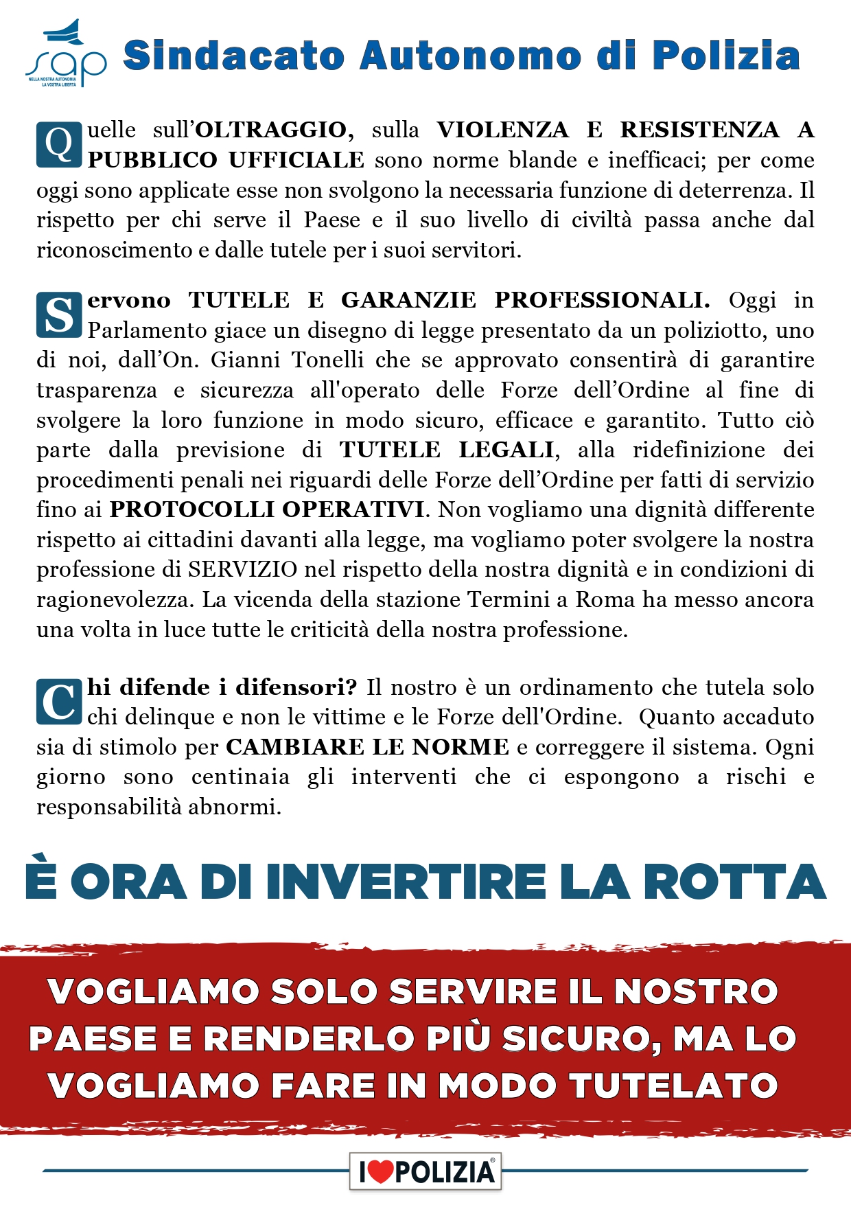 Sap Sindacato Autonomo Polizia "Nella nostra autonomia, la vostra libertà"