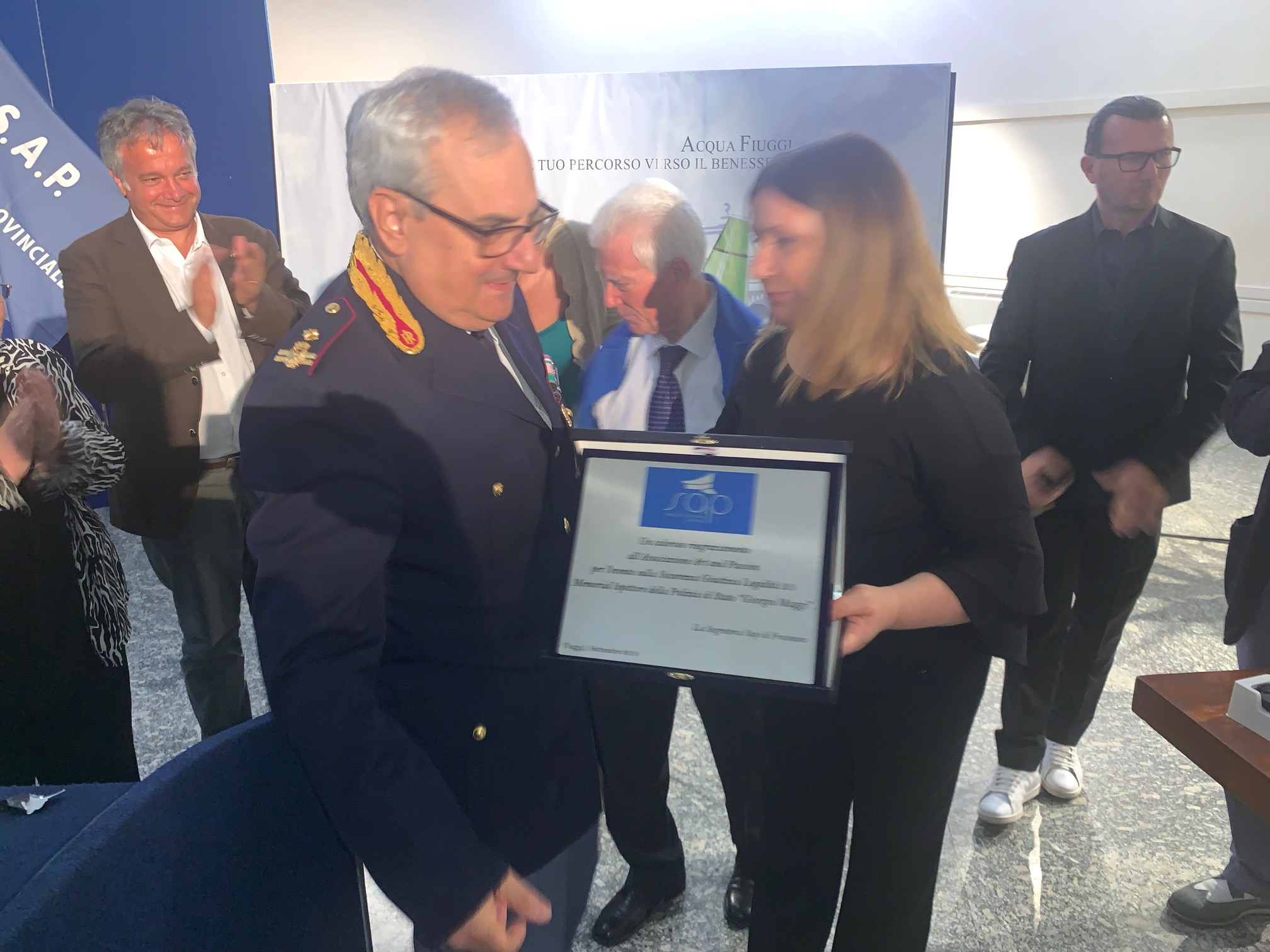 Si è svolto domenica 1° Settembre 2019, presso la Sala Mescita della Fonte Bonifacio VIII° a Fiuggi e con il patrocinio del Comune di Fiuggi, la I^ edizione del Memorial “Giorgio Maggi”, Ispettore Capo della Polizia di Stato, deceduto il 31 dicembre del 2016. L’evento, organizzato dalla segreteria provinciale del SAP (Sindacato Autonomo di Polizia), nella persona di Camilla Padovani, ha visto la partecipazione del Segretario della Commissione Antimafia, l’On. Gianni Tonelli, del Dirigente del Compartimento Lazio della Polizia Stradale, Mario Nigro, oltre al Questore di Frosinone, Leonardo Biagioli, alla psicologa e sociologa Elisabetta Fernandez e alla Prof.ssa Alimonti. La figura di Maggi è stata al centro del convegno “Sicurezza, Giustizia e Legalità 2.0” nella gremitissima sala Mescita, ricordata in video e dai tanti conoscenti e famigliari presenti: “La memoria è fondamentale nella nostra vita – sottolinea Camilla Padovani – Personalmente non ho avuto l’onore di conoscere Giorgio Maggi, ma da quello che ho sentito, visto e percepito in tutti questo tempo sulla sua persona, ho ben capito chi fosse e quanto intensamente abbia vissuto la sua storia di uomo e poliziotto”. Ispettore di Polizia, Giorgio Maggi, dopo anni trascorsi in vari uffici approdò nel 1994 quale Responsabile, nel nucleo interno stradale della scorta a Papa Giovanni Paolo II°. Andò in pensione nel 2001. Una pensione che venne brutalmente stroncata nel 2016 alla fine di una lunga lotta contro un male incurabile. A margine della manifestazione l’Associazione “Art & Passion” ha consegnato 2 personal computer, 2 tablet e 8 bodycam alla segreteria Provinciale di Frosinone del Sindacato Autonomo di Polizia, segreteria che destinerà poi tali apparecchiature tra la Questura di Frosinone, il Commissariato della Polizia di Stato di Fiuggi e la Sezione di Polizia Stradale di Frosinone, per le esigenze di sicurezza e controllo del territorio: “Un gesto di enorme sensibilità e di grande importanza – sottolinea l’On. Gianni Tonelli – Soprattutto le bodycam saranno uno strumento di fondamentale importanza nella realtà operativa di tutti gli operatori di Polizia. La sicurezza e la giustizia sono i due elementi in grado di creare un sano rapporto fiduciario tra stato e cittadini. Negli ultimi anni sono stati incolpati tanti innocenti poliziotti o carabinieri rovinati da accuse rivelatesi spesso false. La bodycam spazzerà via faldoni e faldoni di processi, e non consentirà ad accuse balorde di rovinare la vita a tanti operatori di polizia. Forse non ci si rende conto di quanto sia devastante vedere la vita rovinata sotto il profilo psicologico e anche economico da accuse infondate che ti trasformano in un attimo nell’orco cattivo. Quella delle videocamere è una battaglia da me iniziata nel 2013 e sarà anche uno straordinario strumento deflattivo”.