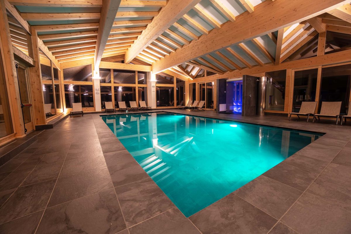 La struttura dispone di un meraviglioso centro benessere con 2 saune, 2 aree relax, 2 sale massaggi, una vasca idromassaggio esterna ed una fantastica piscina interna con vista direttamente sulle piste da sci.