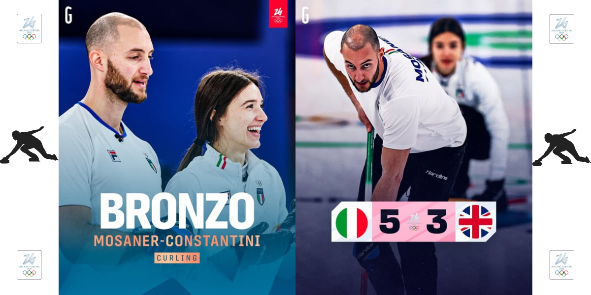 La coppia cremisi ha superato la Gran Bretagna nella finale per il terzo posto con il punteggio di 5-3, dopo una sfida equilibrata decisa dalla gestione perfetta dei momenti chiave del match. Dopo tre end in parità, gli azzurri hanno preso il largo nella quarta mano e controllato il vantaggio fino all’ultimo tiro.