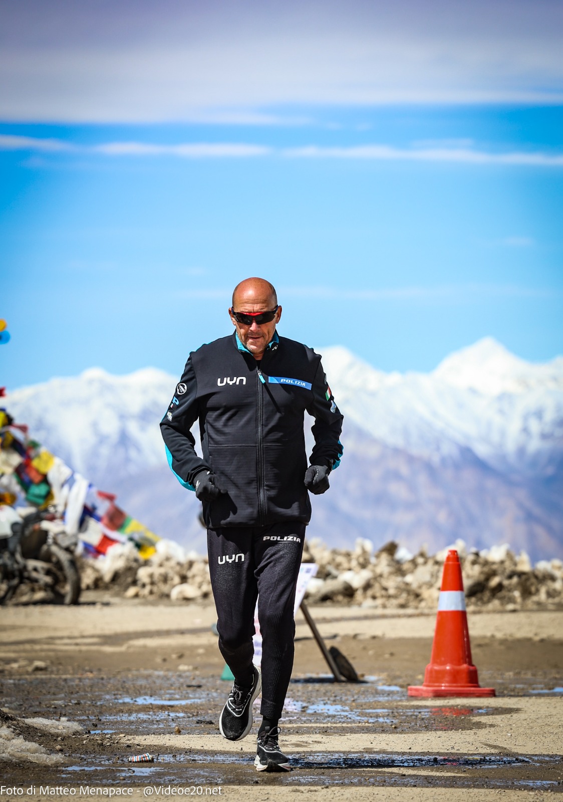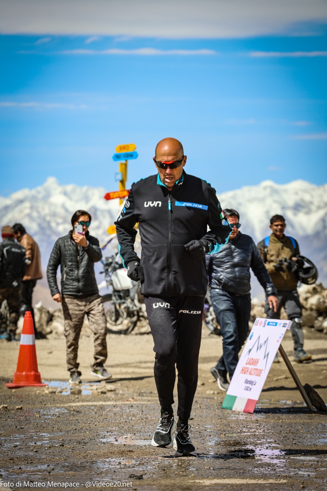Il Vice Ispettore Paolo Venturini del Gruppo Sportivo Fiamme Oro, sezione atletica leggera, stabilisce un nuovo record mondiale sul Khardung La, il valico stradale più alto al mondo. Alle ore 14:30, sul Khardung La, situato a quota 5.602 metri sul livello del mare, il Vice Ispettore della Polizia di Stato Paolo Venturini, appartenente al Gruppo Sportivo Fiamme Oro con sede presso il II Reparto Mobile di Padova, ha conseguito un risultato straordinario. Dopo due settimane di acclimatazione ed allenamenti a quota 3.600 nella città di Leh, l’ultramaratoneta padovano ha stabilito un nuovo record mondiale attraverso un’azione di endurance continuativa della durata di 2 ore, 52 minuti e 53 secondi, percorrendo la distanza di 20,7 chilometri. Questa sfida sportiva, mai riuscita in precedenza da altri atleti, non solo rappresenta un notevole valore sportivo, ma ha anche un importante risvolto scientifico. Durante l’impresa, Venturini è stato monitorato ogni 20 minuti da un team di medici appositamente giunto dall’Italia, insieme a un team medico di pronto soccorso indiano. L’obiettivo era approfondire gli effetti del mal di montagna sull’organismo umano. Grazie alla collaborazione della Polizia indiana, è stata creata una corsia protetta sulla cima del Khardung La, della lunghezza di 100 metri, che l’ultramaratoneta padovano ha percorso salendo e scendendo per 207 volte, mantenendo costantemente la quota di 5.602 metri sul livello del mare. Tutta la sfida è stata documentata e ripresa da una co-produzione televisiva tra Bike and Adventure Team S.a.s., videoe20 e Pubbliteam, che ha realizzato un’opera cinematografica destinata ai principali canali televisivi nazionali ed internazionali. Inoltre, verrà realizzato un docu/film intitolato “Ladakh High Altitude”. L’Ambasciata italiana di New Delhi ha seguito attentamente il progetto, coordinando tutte le fasi organizzative con le autorità indiane. Il progetto è sostenuto dal Ministero dell’Interno e dalla Polizia di Stato, che vedono in Paolo Venturini un “ambasciatore” capace di promuovere i valori e i principi dello sport, oltre ad essere particolarmente attento alla salvaguardia ambientale e ai cambiamenti climatici. Venturini è infatti Goodwill Ambassador del Northern Forum, l’unione dei paesi e delle regioni che si affacciano al Mar Glaciale Artico, che ha come missione prioritaria la protezione dell’ambiente e delle popolazioni artiche.