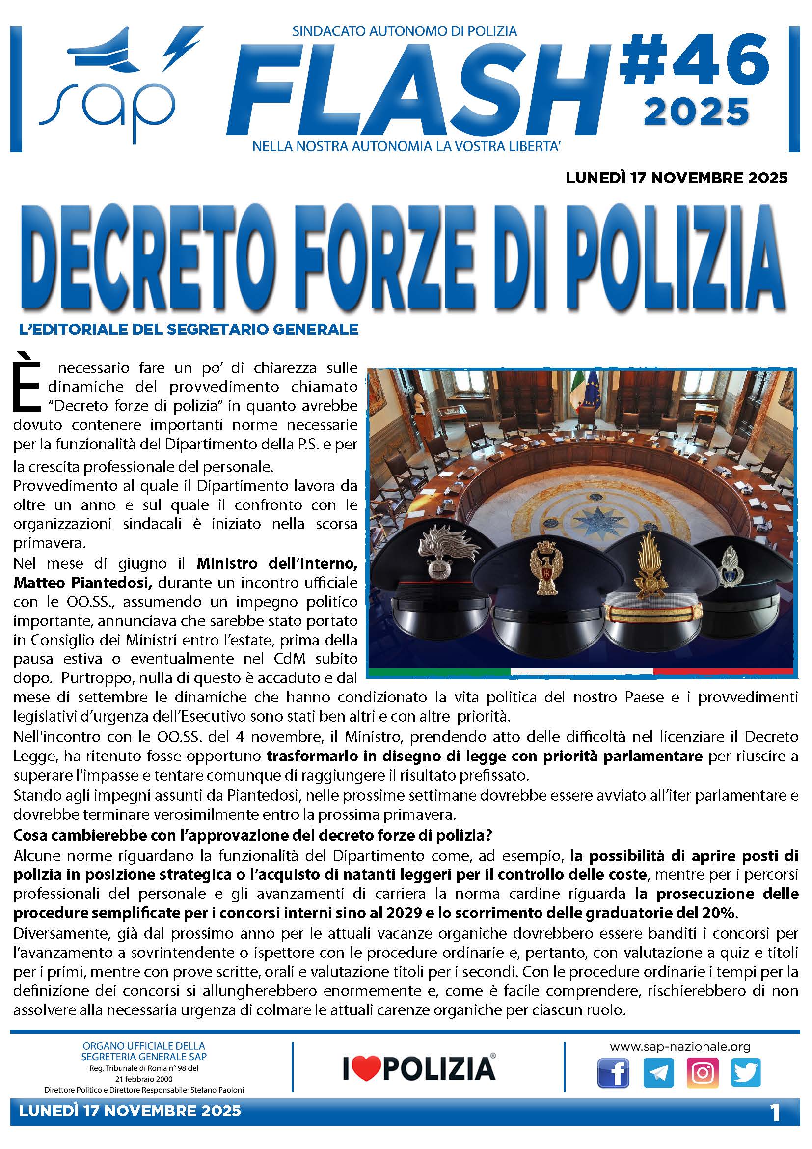 Le organizzazioni maggioritarie della Polizia di Stato, Siulp, Sap, Siap, Fsp Polizia che rappresentano l’80% di tutto il personale, prendono atto della mancata convocazione da parte della presidenza del Consiglio dei Ministri.