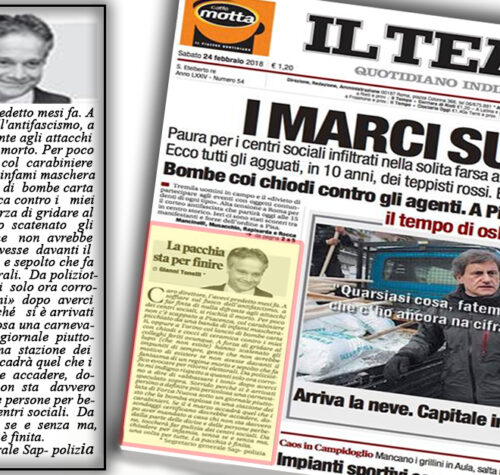 A soffiare sul fuoco dell’antifascismo si rischia il morto. Oggi, l’editoriale di Gianni Tonelli, Segretario Generale SAP, è in prima pagina su Il Tempo.