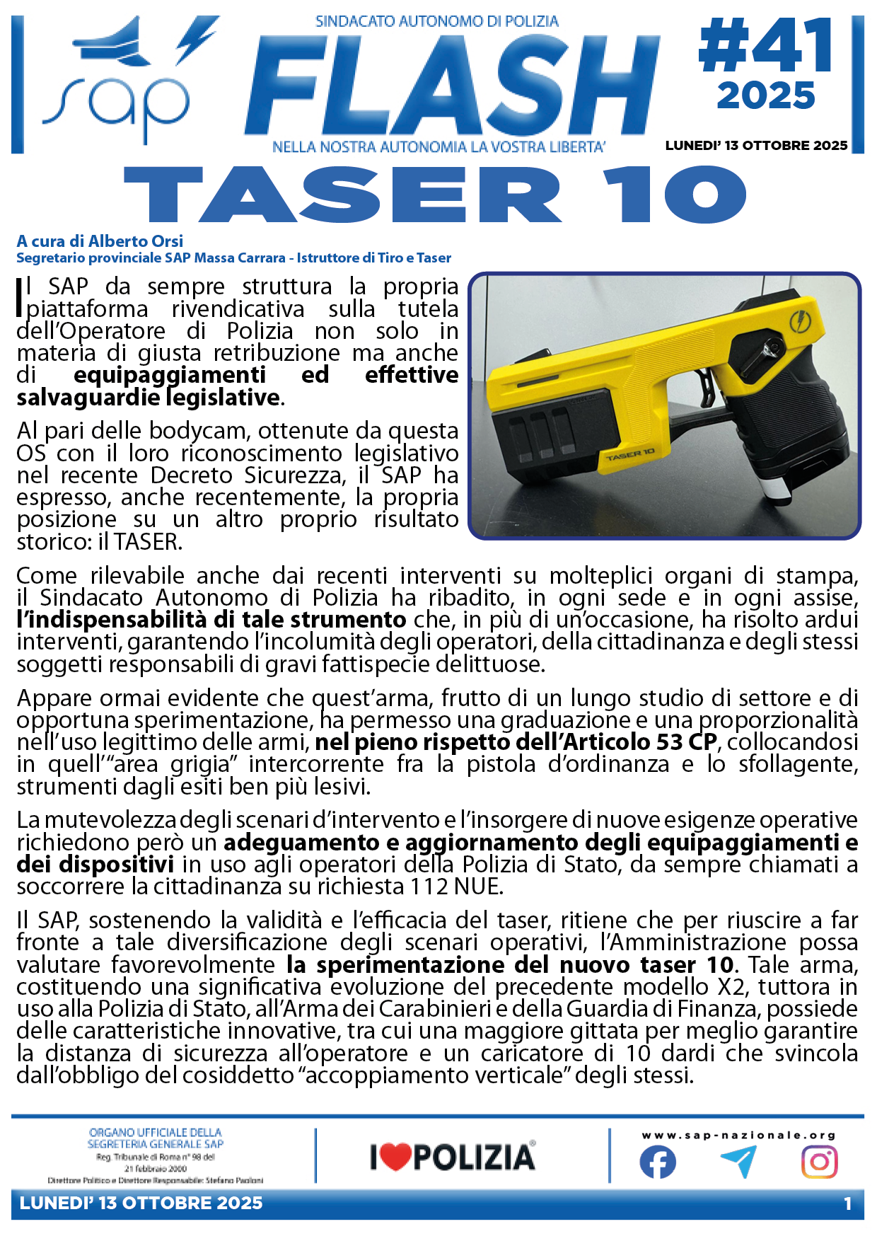 «Tutti gli operatori che svolgono attività di polizia giudiziaria e controllo del territorio dovrebbero essere dotati di telecamere e bodycam». Le parole del Segretario Generale del SAP, Stefano Paoloni, pronunciate.