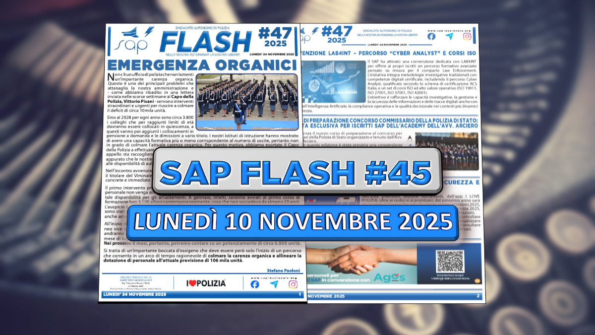 È online il SAP FLASH nr. 46 -2025 – DECRETO FORZE DI POLIZIA Per scaricarlo clicca sul link sottostante SAP