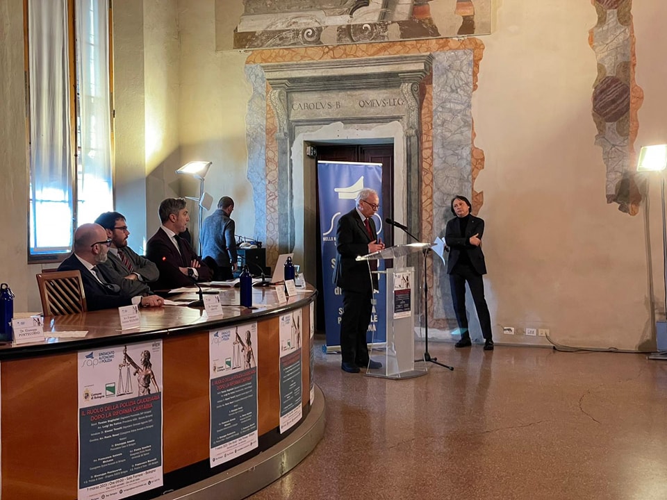Nella giornata di ieri si è tenuto presso la Sala Farnese di Palazzo d’Accursio a Bologna il Convegno organizzato dalla Segreteria provinciale del SAP di Bologna dal titolo: “Il Ruolo della Polizia Giudiziaria dopo la Riforma Cartabia”. A presenziare il tavola come relatori vi erano il Dott. Giuseppe Amato Procuratore Capo di Bologna, l’Avv. Francesco Antonio Maisano Consigliere Ordine Avvocati di Bologna, l’Avv. Pietro Insolera Assegnista Diritto Penale Università del Sannio, il Dott. Giuseppe Pontecorvo V.Q. Polizia di Stato Dirigente SISCO Bologna, Dott. Francesco Morselli V.Q. Polizia di Stato DIA Bologna. Il convegno è stato introdotto dal Segretario Provinciale del SAP di Bologna, Tonino Guglielmi, e affiancato dal Segretario Generale Aggiunto del SAP Gianni Tonelli. L’evento, che ha fatto registrare il tutto esaurito, è stato un successo sia per la partecipazione delle Autorità locali che per il livello elevato dei relatori.