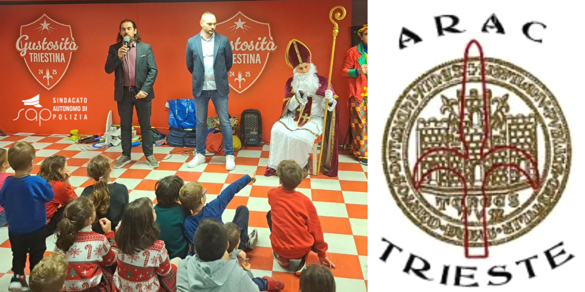 Grande partecipazione allo Stadio “Nereo Rocco” per la seconda edizione della Festa di San Nicolò promossa dal SAP – Sindacato Autonomo di Polizia di Trieste, in collaborazione con l’ARAC. Oltre ottanta bambini, figli degli iscritti, hanno animato il pomeriggio tra giochi, sorrisi e l’atteso arrivo di San Nicolò, che ha distribuito doni apprezzatissimi da tutti.