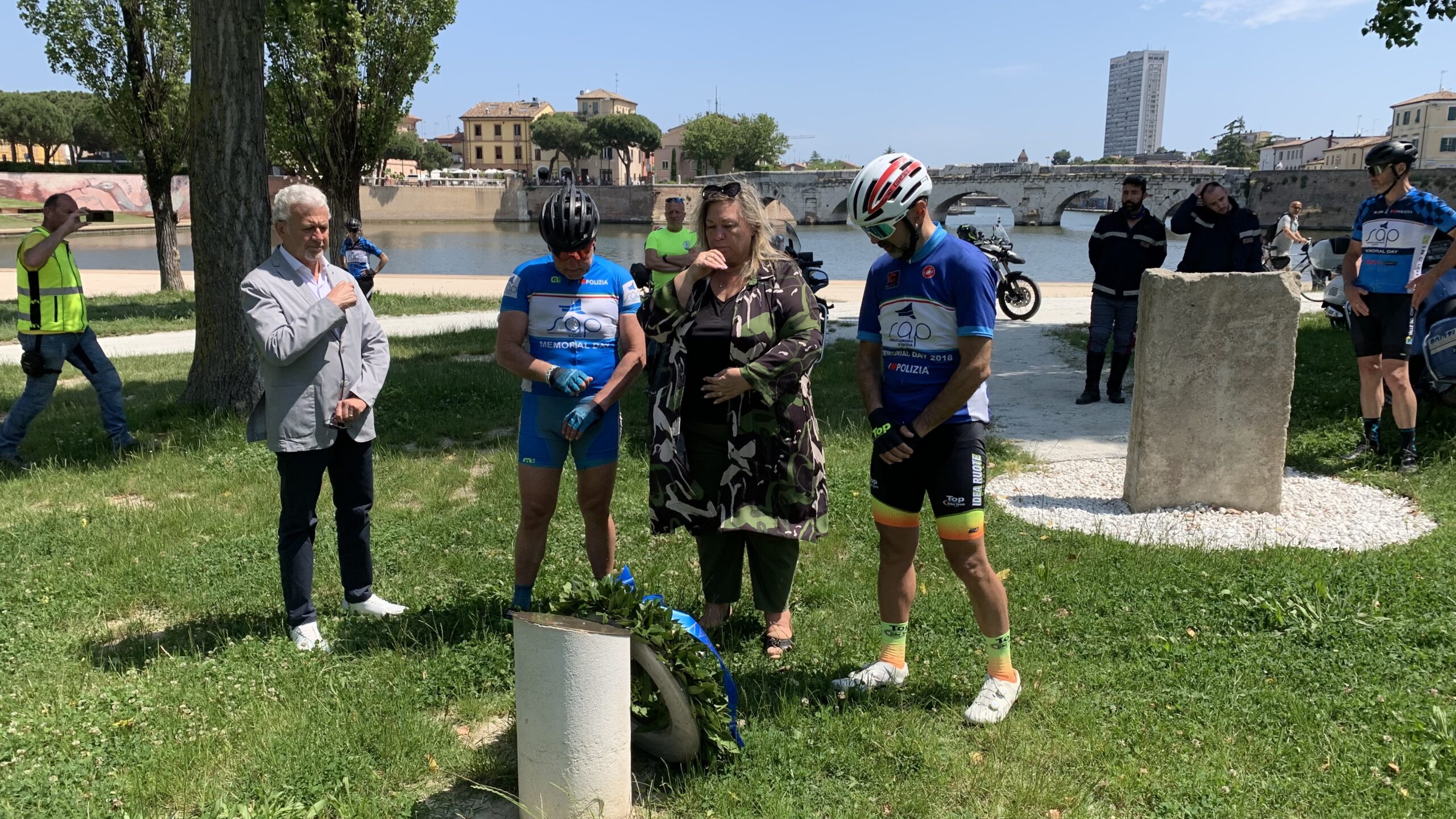 Si è svolta ieri, 30 maggio 2023, la staffetta in bicicletta, per ricordare tutti i caduti della Polizia di Stato, organizzata dalla Segreteria Provinciale di Rimini afferente alle celebrazioni Memorial Day SAP 2023 . La manifestazione ciclista ha preso il via dalla Chiesa Collegiata di Santarcangelo, dedicata a San Michele Arcangelo patrono della Polizia di Stato, dopo la benedizione e una breve preghiera di Don Giancarlo e alla presenza del Sindaco di Santarcangelo Alice Parma. Successivamente, il gruppo di ciclisti è giunto a Novafeltria dove è stato ricordato l’Appuntato Scelto dell’Arma dei Carabinieri Alessandro Giorgioni (ucciso a Sant’Agata Feltria il 22 luglio 2004 dal latitante Luciano Liboni ndr) alla presenza della moglie, Simona Cola, e del Sindaco di Novafeltria Stefano Zanchini. A seguire, la carovana ciclistica composta da Angelo, Tiziano, Andrea e Pietro, scortata in sicurezza durante tutte il percorso da personale della Polstrada e da una delegazione del Moto Club della Polizia di Stato, ha fatto ritorno a Rimini presso il Parco dei Giusti dove è stato reso omaggio all’ex Questore di Fiume Palatucci presso il cippo a lui dedicato. Giunti infine in Questura presso la Sala Conferenze, alla presenza del Prefetto Dr.ssa Padovano e del Questore Dr.ssa Lavezzaro, è stato ricordato Antonio Mosca, ucciso il 29 luglio 1989, con l’apposizione di una targa commemorativa. La manifestazione si è conclusa con la deposizione di una corona al cippo dedicato al Sovrintendente Antonio Mosca e a tutti i caduti della Polizia di Stato all’ingresso della Questura alla presenza di Padre Paolo Carlin che ha officiato un breve momento di preghiera. Particolarmente toccanti i momenti della cerimonia a cui hanno partecipato la vedova del Sovrintendente Mosca ed i figli, le delegazioni degli altri Sindacati di Polizia, l’A.N.P.S. e l’Ufficiale OMRI Addolorata Di Campi, vittima del dovere e sopravvissuta all’agguato che portò alla morte del Sov. Mosca. Molto sentito e partecipato il Memorial Day riminese, che ha visto la presenza di numerosi appartenenti alla società civile nonché colleghi, in servizio ed in quiescenza.