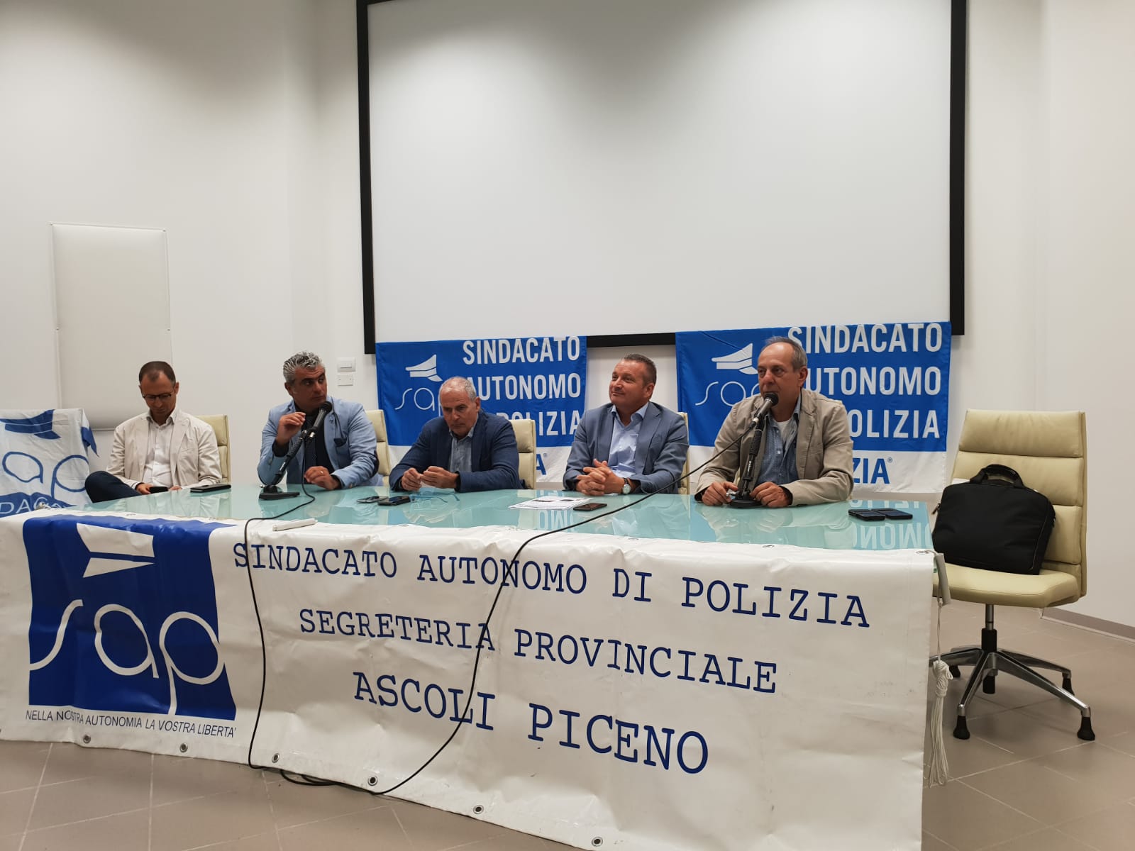 Dopo l’inaugurazione della Questura e della Sezione di Polizia Stradale di Fermo, nella giornata odierna, in una partecipata assemblea sindacale, in cui sono stati trattati importanti argomenti di stretta attualità, tra cui riordino delle carriere, contratto di lavoro e contratto di governo nella parte relativa alla sicurezza, si è dato ufficialmente avvio alla fase congressuale per la nomina della nuova segreteria provinciale Sap di Fermo e di tutti i delegati sindacali. All’incontro presenti il Segretario Generale Stefano Paoloni, il Segretario Nazionale Sabatino Romano, il Segretario Regionale delle Marche Luca Bartolini, i Segretari provinciali di Ascoli Piceno e Ancona, Massimiliano D’Eramo e Filippo Moschella.