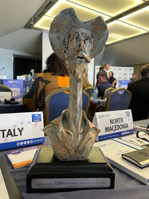 Il Prefetto, con Adolfo MEDINA, Presidente del sindacato spagnolo SPP, organizzatore dell’evento, ha consegnato, nelle mani di Massimo DENARIER, un’opera in ceramica riproducente un Don Quijote stilizzato, affinché il SAP continui a condurre le sue battaglie sindacali con lo stesso ardore del celebre personaggio di Cervantes.