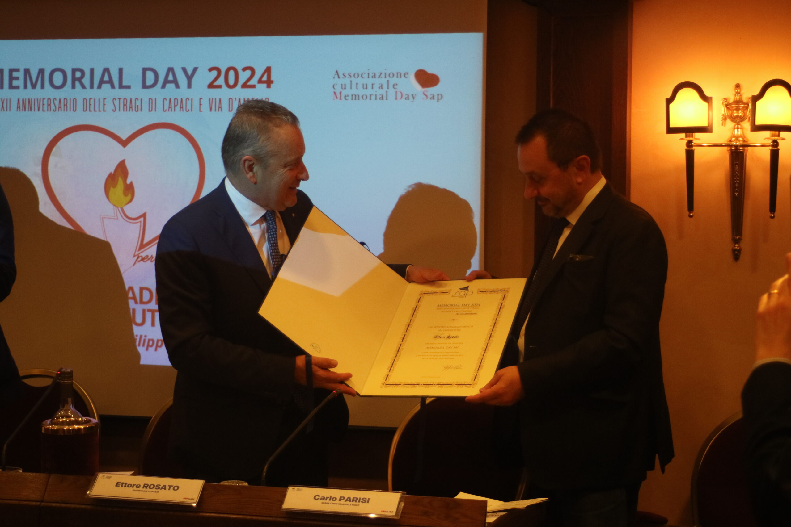 Durante l’evento di oggi a Roma sono intervenuti, oltre a Stefano Paoloni e Gianni Tonelli, rispettivamente Segretario Generale e Presidente onorario del SAP, anche Marisa Grasso e Fabiana Raciti, moglie e figlia dell’Ispettore scomparso 17 anni fa, l’On. Nicola Molteni, Sottosegretario di Stato all’Interno, l’On. Ettore Rosato, Segretario COPASIR, l’On. Giovanni Maiorano, Commissione Difesa Camera Deputati, l’europarlamentare Anna Cinzia Bonfrisco e Carlo Parisi, Segretario Generale della Federazione Italiana Giornalismo Editoria Comunicazione.