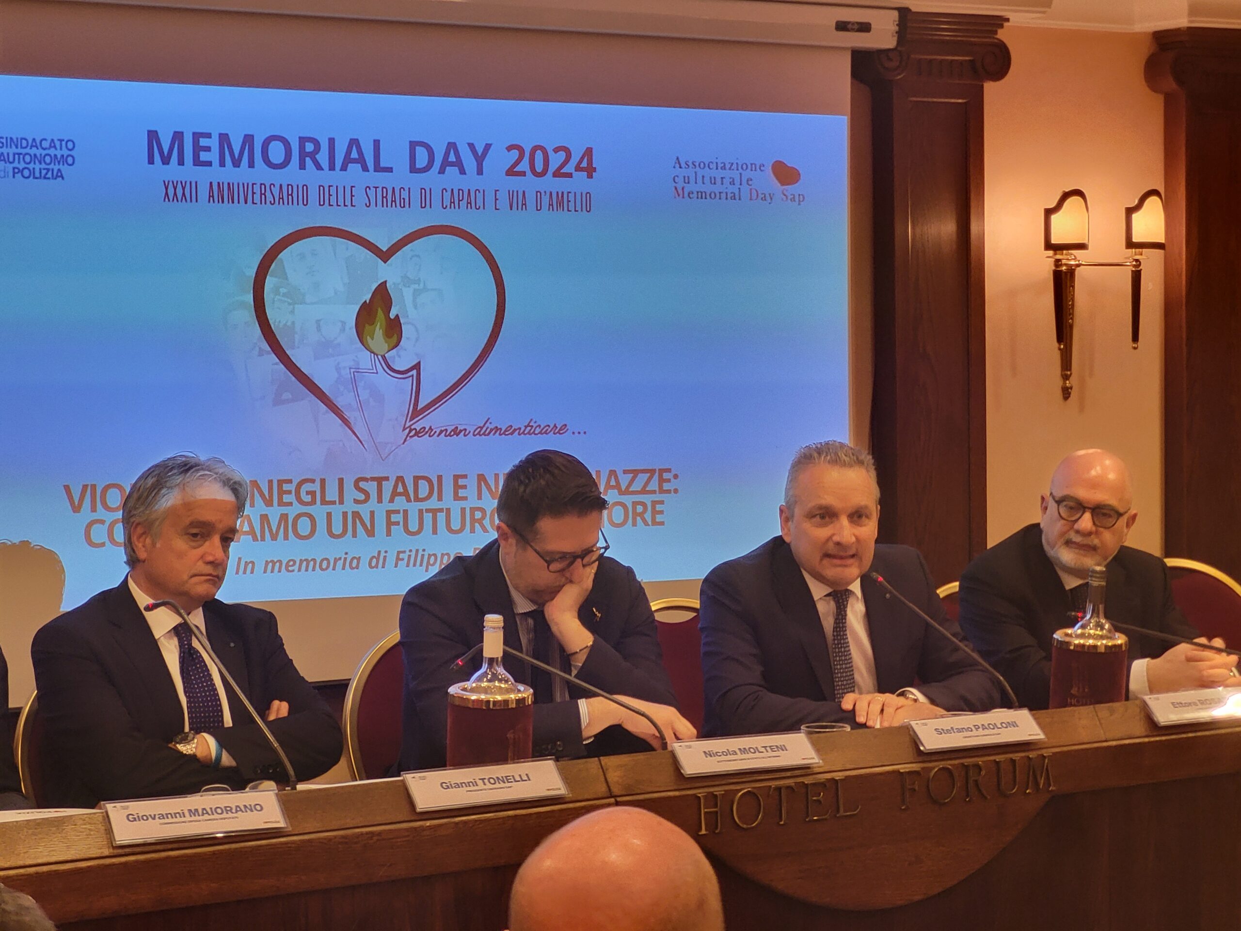 “Con il Memorial Day – ha spiegato Paoloni – ogni anno rinnoviamo il ricordo di quanti hanno sacrificato la loro vita nell’adempimento del dovere, per la tutela della legalità e per la libertà del nostro Paese. Quest’anno lo abbiamo voluto dedicare all’Ispettore Filippo Raciti proprio perché abbiamo verificato che vi è un aumento di incidenti dentro e fuori gli stadi, non si deve abbassare la guardia. Purtroppo anche nelle piazze gli scontri con le forze dell’ordine stanno aumentando in modo molto pericoloso e, per questo, stiamo invocando norme adeguate che consentano a tutti di garantire il diritto a manifestare e di esprimere liberamente il loro pensiero, ma, dall’altra parte, anche di essere tutelati nell’adempimento del nostro servizio”.