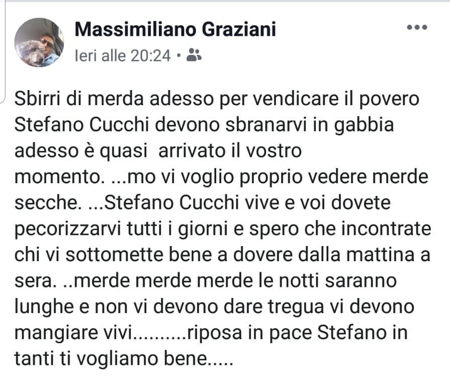OFFESE AI POLIZIOTTI UCCISI. ABBIAMO DENUNCIATO 3 PERSONE