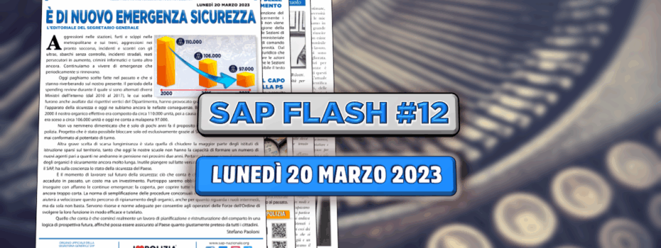 È on line il Sap Flash nr.12 del 20 marzo 2023. Per scaricarlo clicca sul link di seguito SAP FLASH NR.12 DEL 20 MARZO 2023 annarita bigotti criscuolo sicurezza spending review emergenza sicurezza aggressioni donne lavoro naps