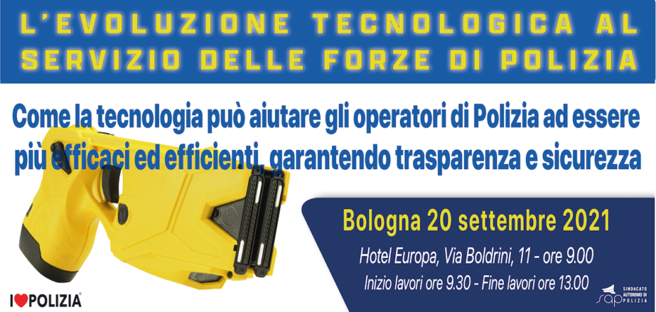 Si svolgerà a Bologna presso l’Hotel Europa in Via Boldrini 11 il giorno 20 settembre 2021 alle ore 9,00 il convegno/seminario riservato alle forze dell’ordine dal titolo “L’EVOLUZIONE TECNOLOGICA AL SERVIZIO DELLE FORZE DI POLIZIA”