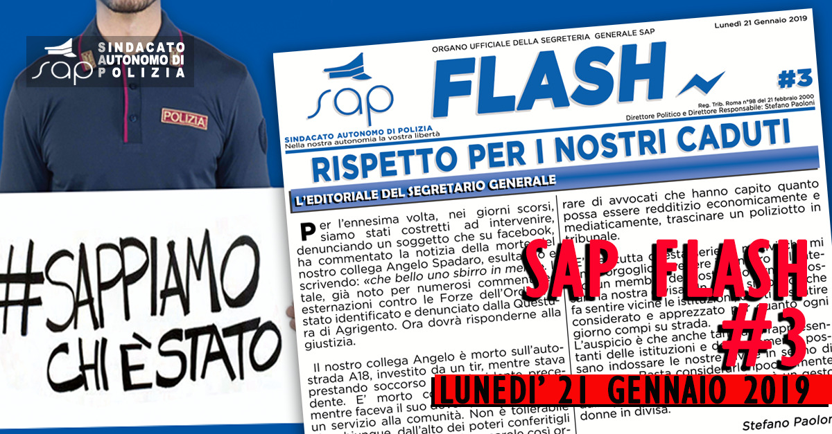 SAP FLASH NR° 03 DEL 21 GENNAIO 2019 News 18 Gennaio 2019 admin 2.402 views 15 secs 0 Comments E’ online il Sap Flash nr° 03 del 21 gennaio 2019. Scaricalo cliccando in basso SAP FLASH NR° 03 DEL 21 GENNAIO 2019 PREVIOUS AREA NEGOZIALE DIRIGENZA – IL SAP E’ SOGGETTO LEGITTIMATO A PARTECIPARE ALLA TRATTATIVA NEXT TUNISINO MORTO DURANTE ARRESTO. PAOLONI: IMPORTANZA DI TASER E TELECAMERE