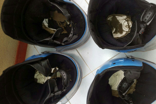 I caschi erano quelli usati per l'ordine Pubblico e custoditi presso il Corpo di guardia.
